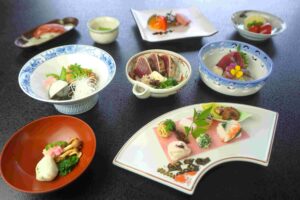 向付 初鰹銀皮造り 桜鯛そぎ造り