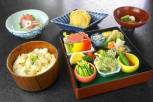 弁当下 花にらおひたし 甘長ししとう こしあぶら天ぷら